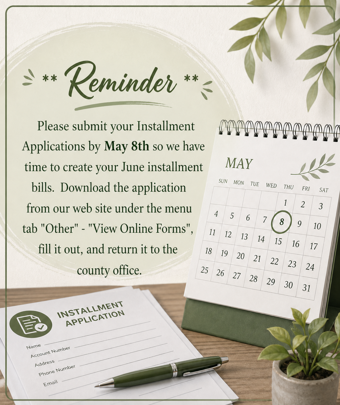 The 2026 Tax Sale has begun, click TAX SALE to access our site.